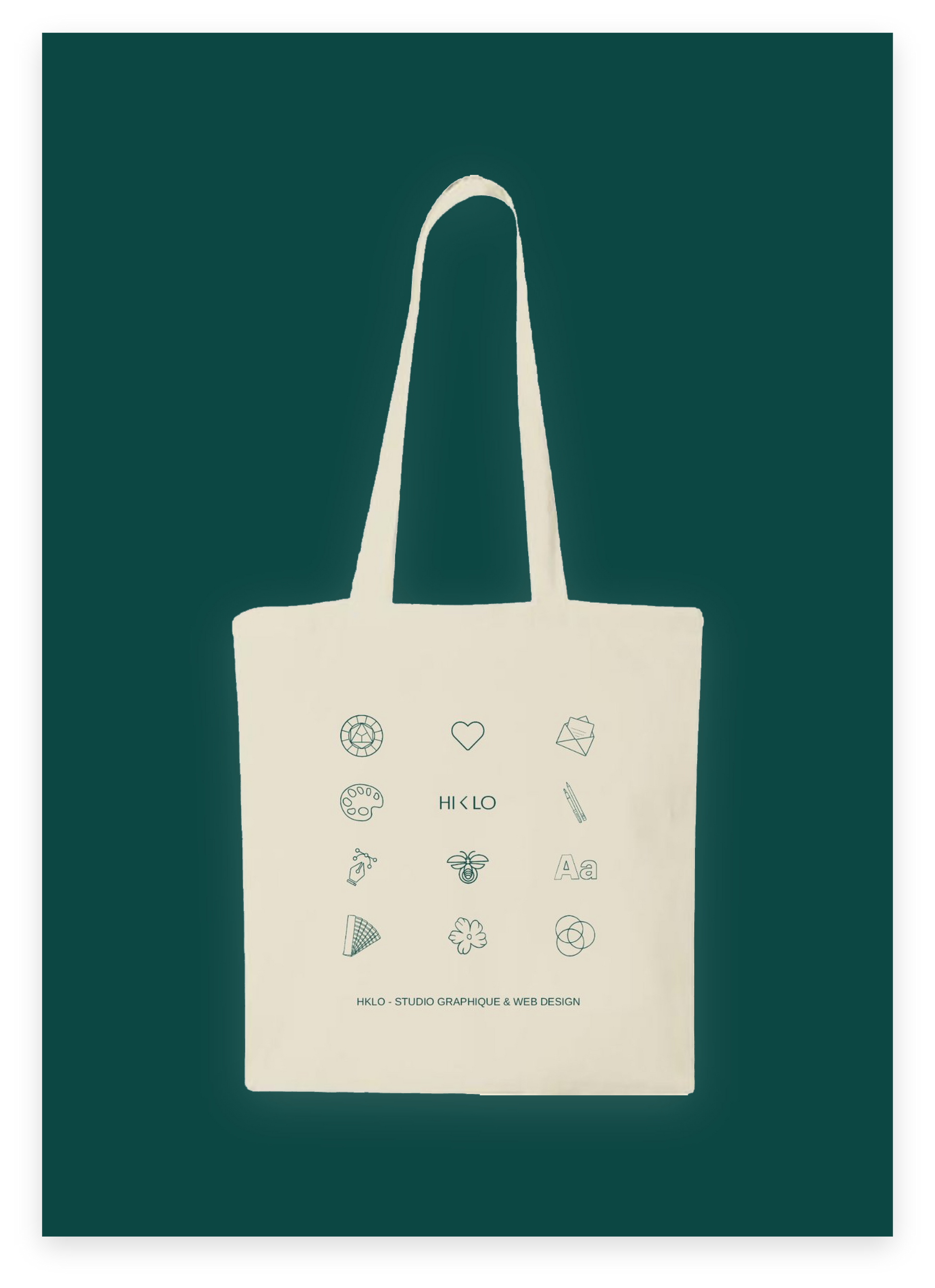 Découvrez notre Tote Bag HKLO, représentant l'essence même de notre studio graphique et web design.